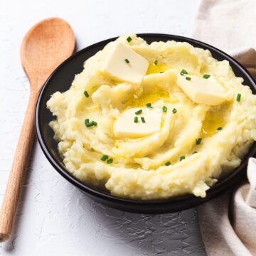 Some do, some don’t. Personally, I like them creamy and fluffy, like you get at restaurants, so I peel them. For a more rustic vibe (and to save time), leave them unpeeled. Also, because we use Yukon Gold potatoes, the skin is very thin (compared to Russet), so it won’t change the texture too much.