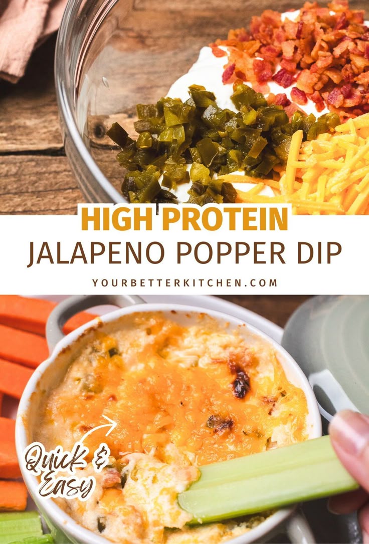 Each serving of this Jalapeno Popper Dip is filled with 13 grams of protein and about 200 calories.
