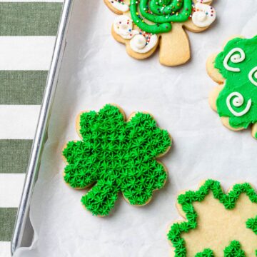 Our St. Patrick’s Day Sugar Cookies are your best choice for celebrating everyone’s favorite green holiday. Here’s why. They’re oh-so buttery, and so impossibly melt-in-your-mouth soft and delicious. Mmmm! And perhaps best of all, they’re super simple to make.